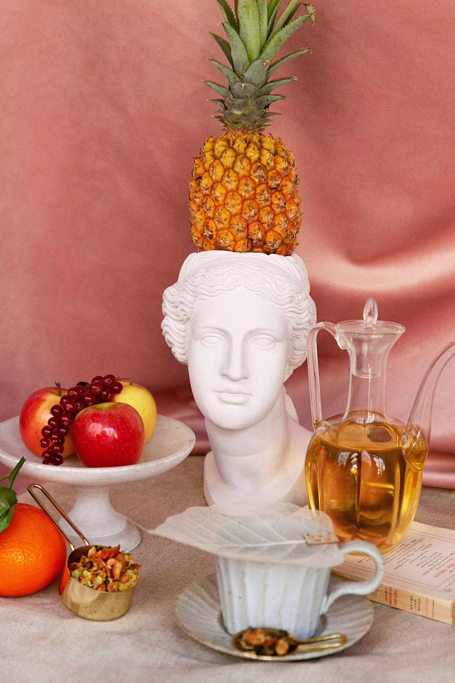 La voilà donc l’incroyable complicité, qui en un ballet au répertoire multiple et au costume éclatant, révèle toute son unicité. À l’acte premier, l’infusion rooibos dévoile un caractère de fruits, pirouettes de pomme et soliloques orangés réveillent ainsi chaque âme endormie de par tant d’adresse et d’esprit. Les feuilles de mûre, décor à la note boisée, se lient d’amitié à la bien chanceuse camomille – dont le bienfait prévaut sur l’amertume pure. En plein coeur d’une scène, la cannelle fait la part belle à la féminité et prend spontanément les rênes de toute une troupe aux épices : gingembre, girofle, poivre et cardamome suivent d’un pas cadencé. C’est au rythme de cette folie douce, que se montre alors la fragilité même, sous les traits d’une mauve des bois. Touchante de simplicité, brute d’honnêteté, elle est la clef de cette lecture romanesque.