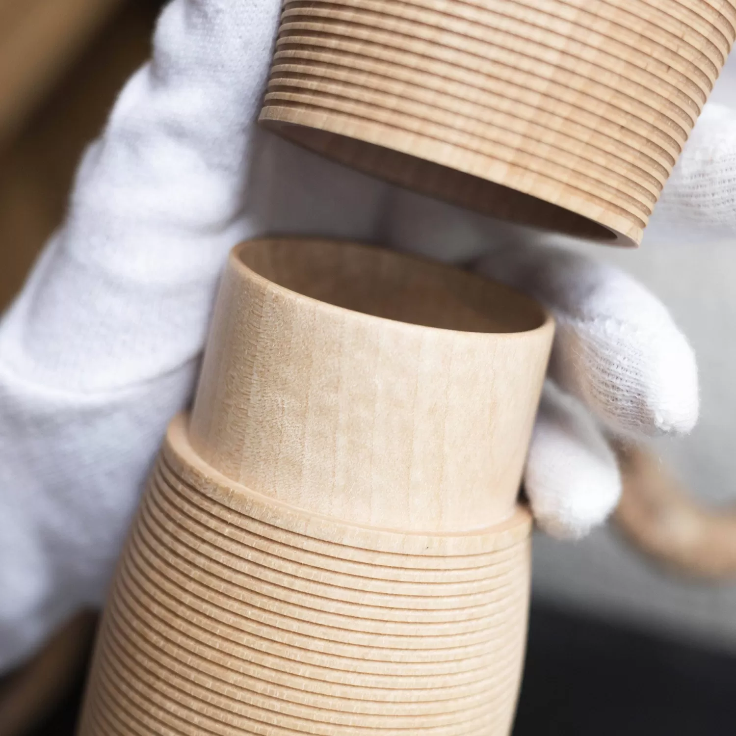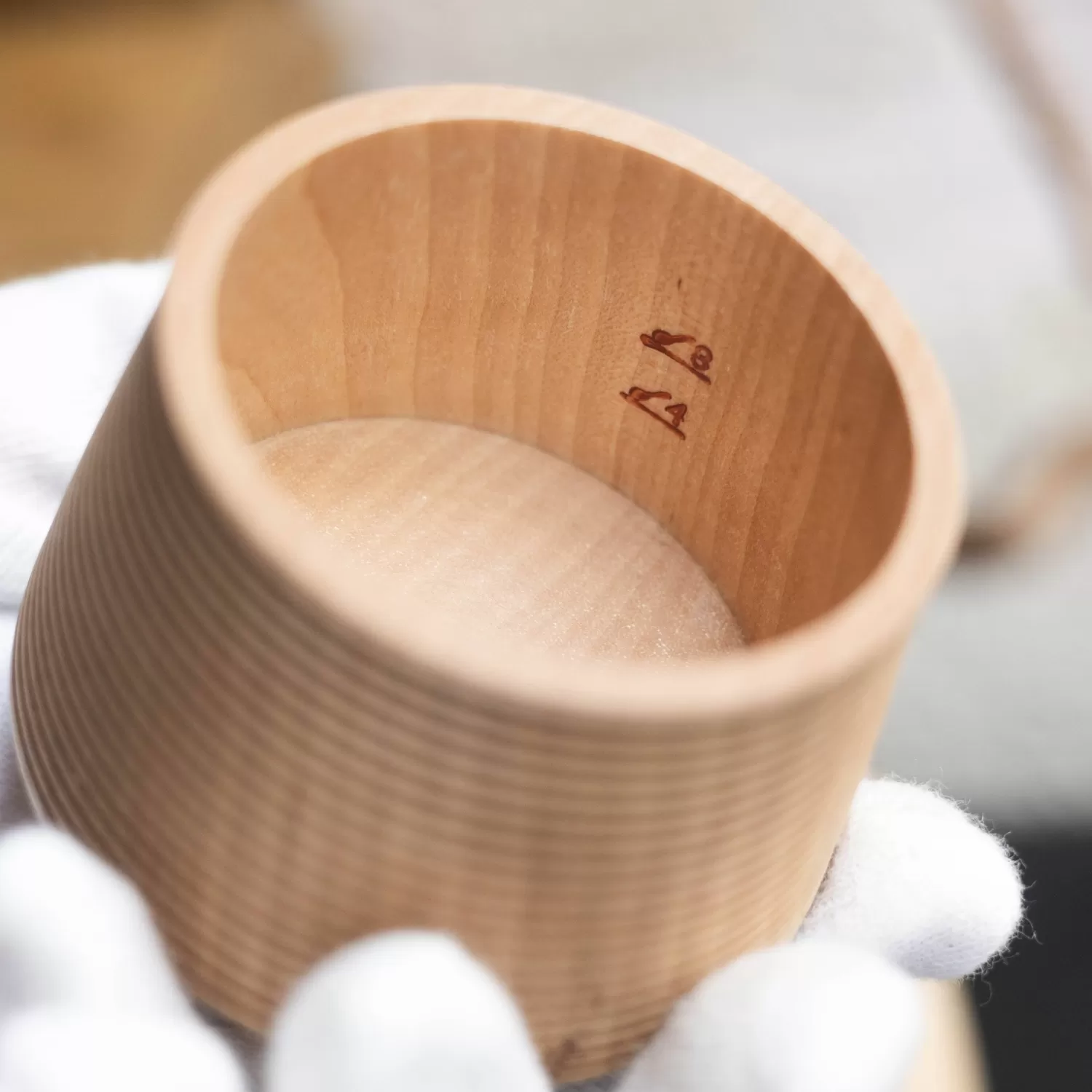 Véritable boîte à thé japonaise, faite main en bois de bouleau strié, offrant une protection optimale des arômes, grâce à son couvercle parfaitement adapté.