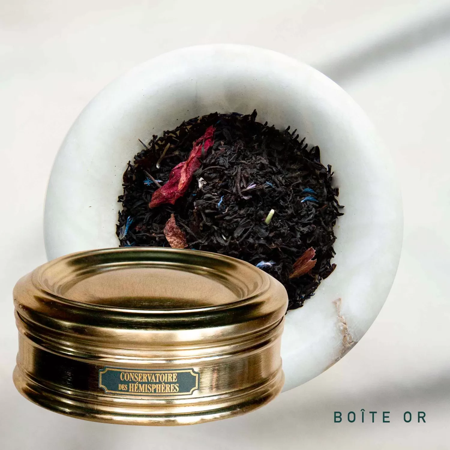 Au-delà des Monts Huang, se dévoilent les jardins de thés suspendus où terres humides et soleil timide font la richesse de ce thé noir. L’orchidée, en véritable fleur épanouie, apporte délicatesse à l’amertume ; la pivoine et le bleuet, en cortège de pétales, procurent le dépaysement recherché.