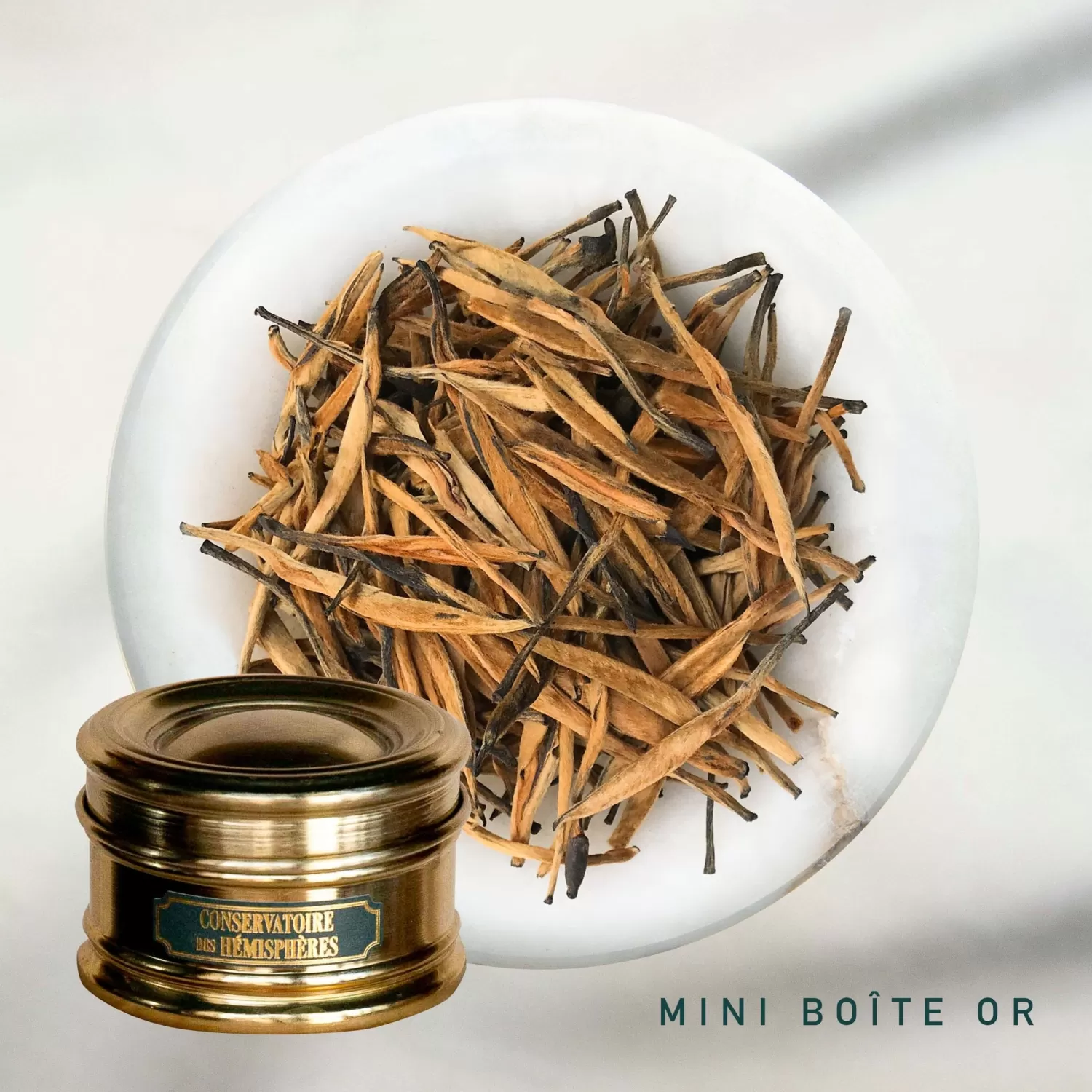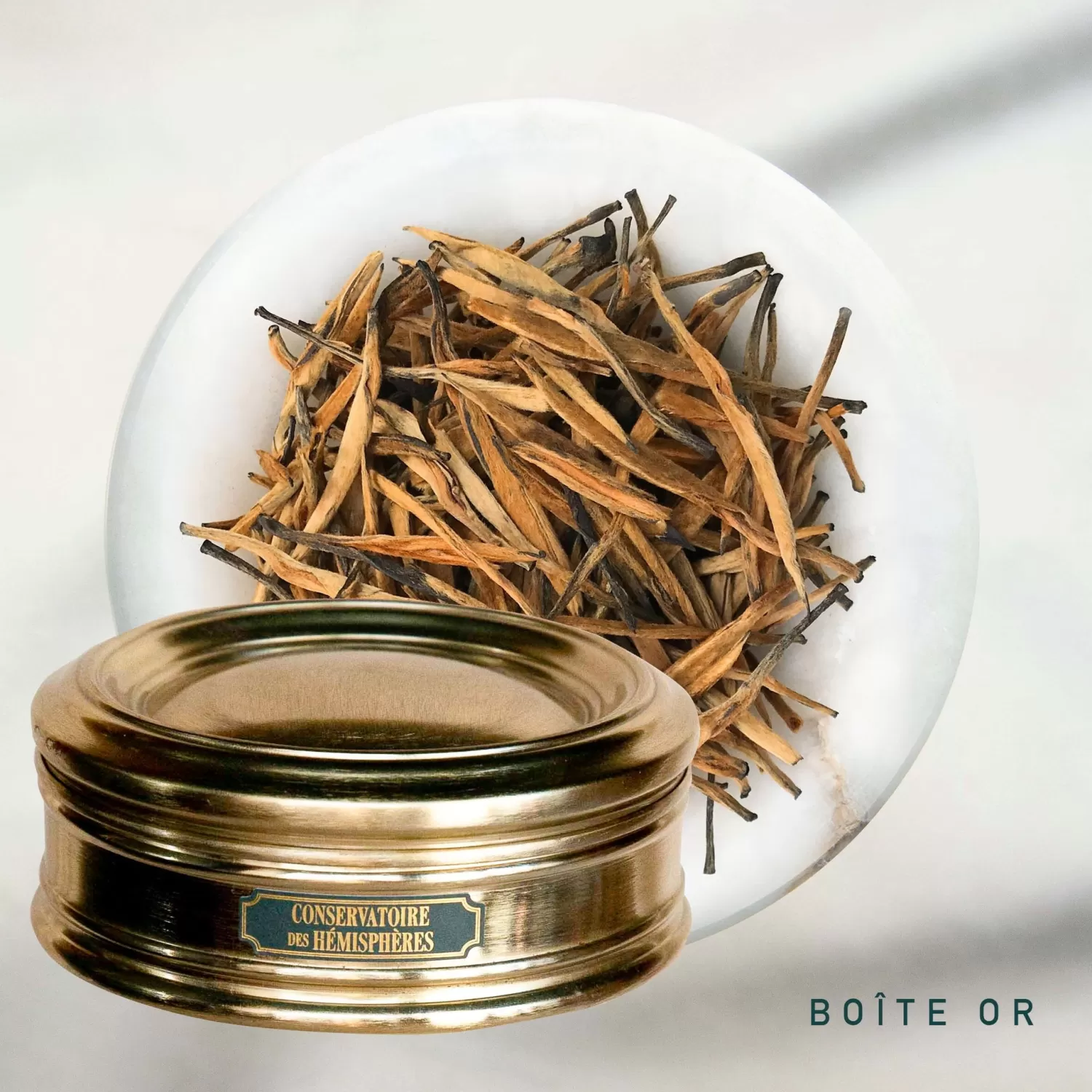 Issu d’un travail artisanal soigné et cultivé sans engrais ni pesticides chimiques, ce grand cru exceptionnel est composé exclusivement de tendres et soyeux bourgeons dorés, dont les théiers âgés de 50 à 80 ans sont originaires du petit village La Bo. Il est connu sous le nom chinois « Dian Hong Jin Ya », et est sans conteste l’un des meilleurs thés noirs de Chine.