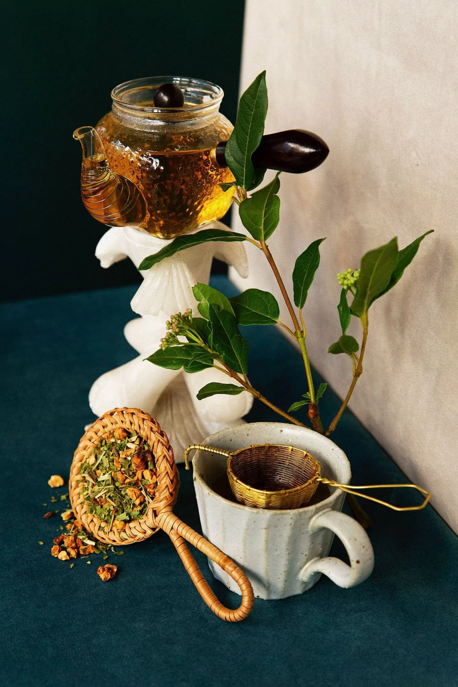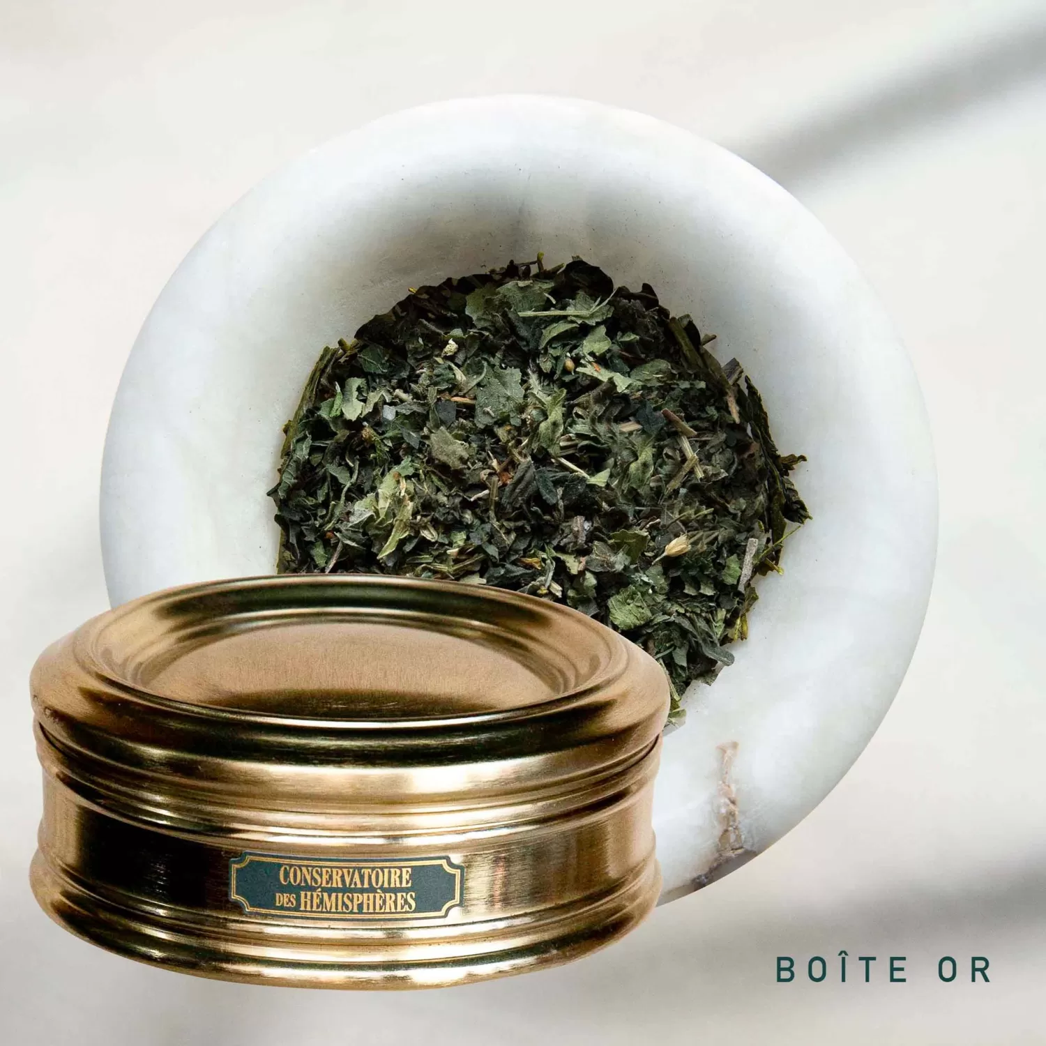 Les maux de notre siècle ont le douteux plaisir d’élire refuge dans nos corps et esprits. Faites cesser cet état de fait : on purifiera l’humeur et l’on clarifiera l’organisme par de bienfaisantes gorgées au renfort de l’équilibre mis à mal. L’ortie, au goût herbacé prononcé – et aux vertus médicinales qui le sont autant – reminéralise le corps par son exceptionnelle richesse en vitamines, magnésium, manganèse, potassium, silicium, soufre et zinc. L’action diurétique de la plante se voit potentialisée par les extraits d’alchémille tout en bonifiant la circulation sanguine. “La feuille aux abeilles” – la mélisse – est douée d’un parfum doux, citronné, à la similarité de menthe fraîche. Elle apaise tant la digestion que le système nerveux et déploie une action antioxydante. Les feuilles de framboisier luttent contre les pesanteurs digestives tandis que le millepertuis, au goût astringent, stimule la détoxication hépatique. Lorsque l’achillée, anti-inflammatoire et antispasmodique oeuvre, la prêle signe cet inventaire d’un nouveau bien-être par son action sur la beauté de la peau.