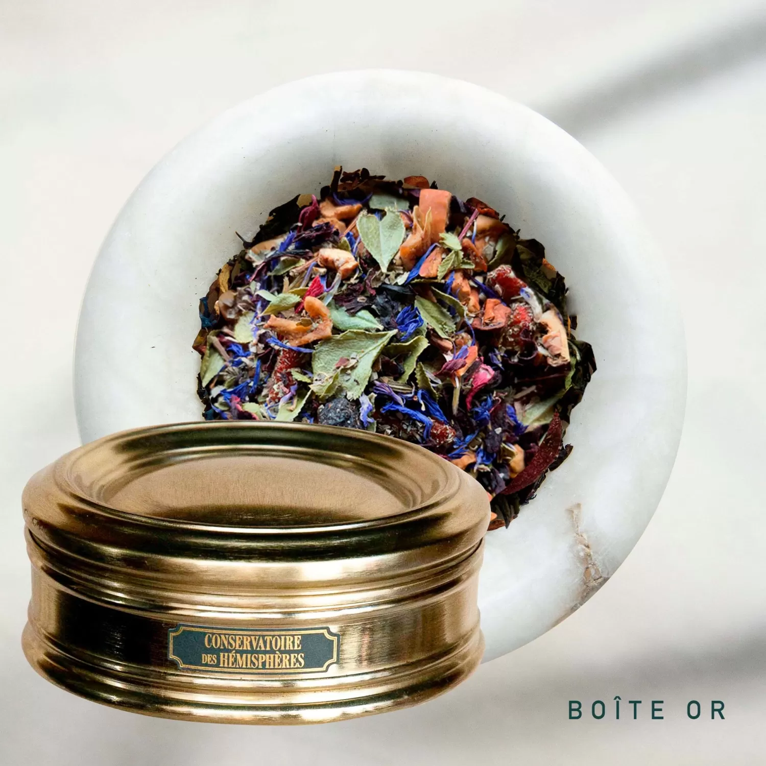Infusion fruit de la passion et hibiscus menée par la félicité des fruits rouges