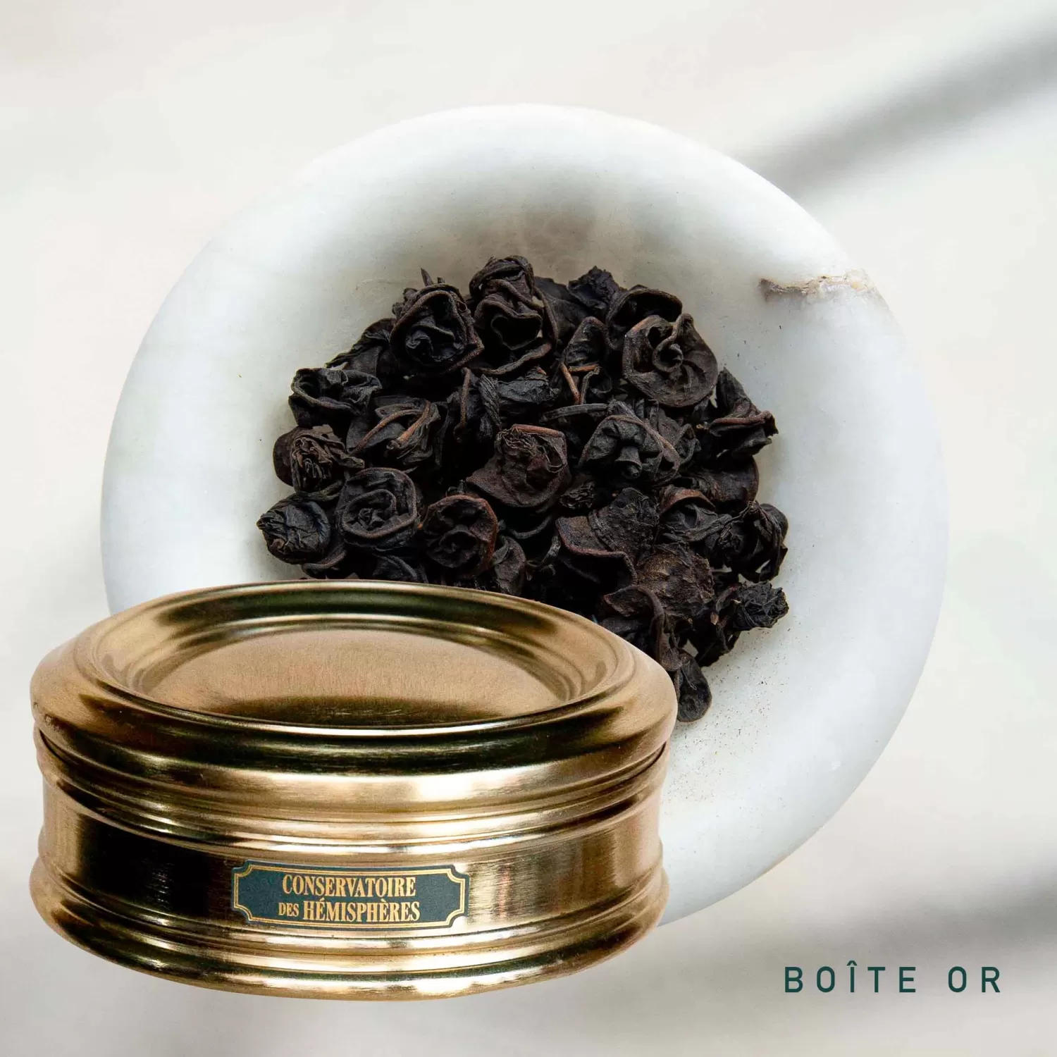 La feuille tendre juste en dessous du bourgeon, cueillie à la main est filée délicatement pour créer un thé unique au monde. Son ambre couleur et son allure de rosaces révèlent des accords citronnés, de miel et de malt – caractéristiques du terroir de Ceylan. À la texture moelleuse et souple, son montant est le compagnon des instants délicieux, qu’ils soient des matins ou des après-midi. Infusée à répétition, la tasse se voit conquérir de nouveaux territoires aromatiques avec la splendeur d’une genèse gustative consacrée. Ce thé d’exceptionnalité voit de très petites quantités choyées puis cultivées.