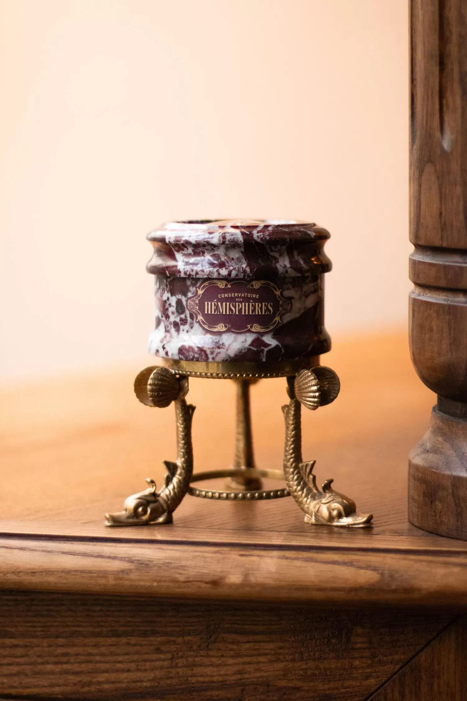 Dernier né dans notre collection de boîte signature, le Conservatoire des Hémisphères fait la part belle à l’artisanat avec sa boîte durable sculptée dans du marbre carmin.