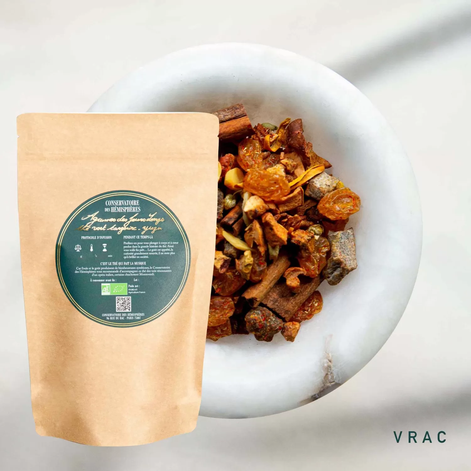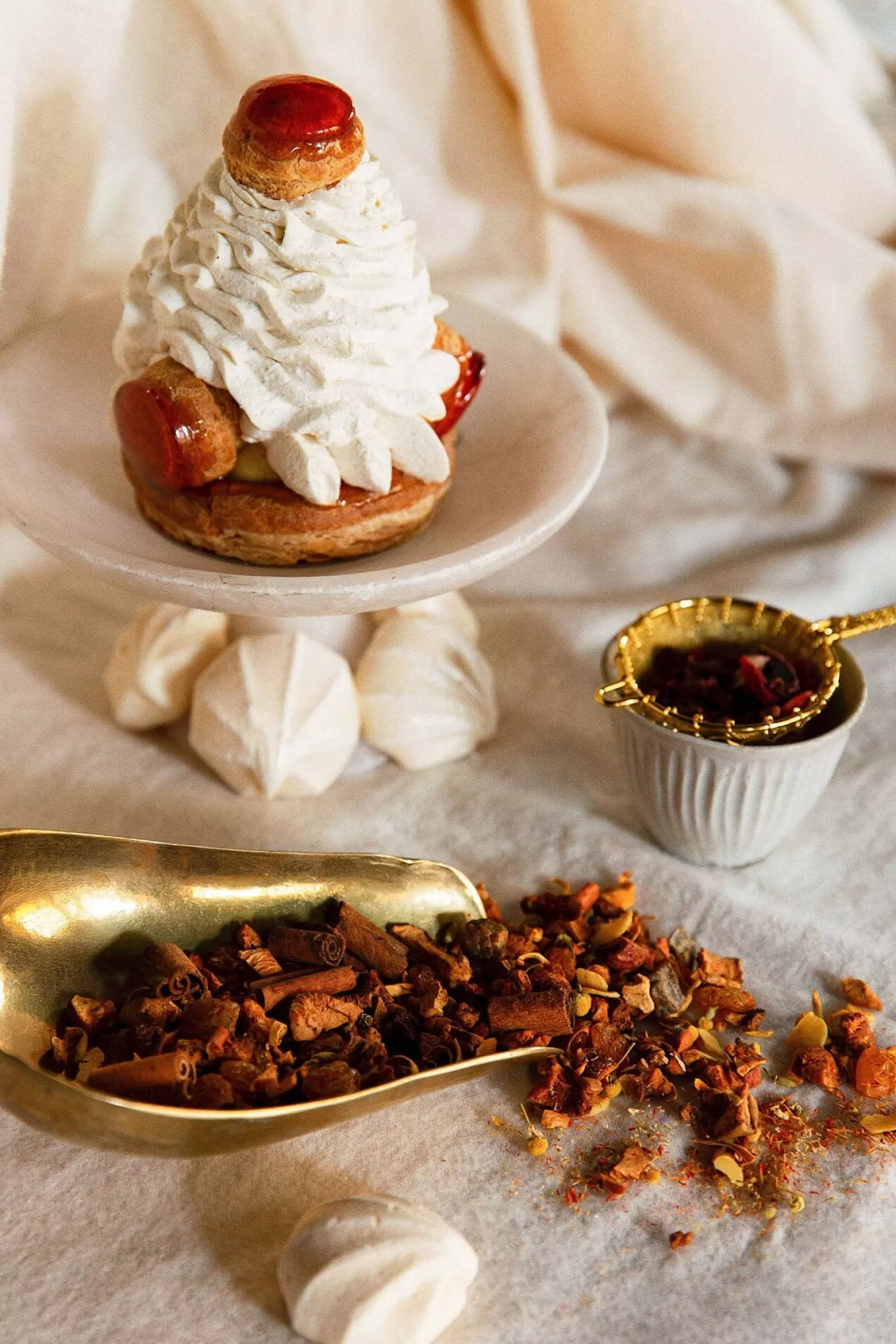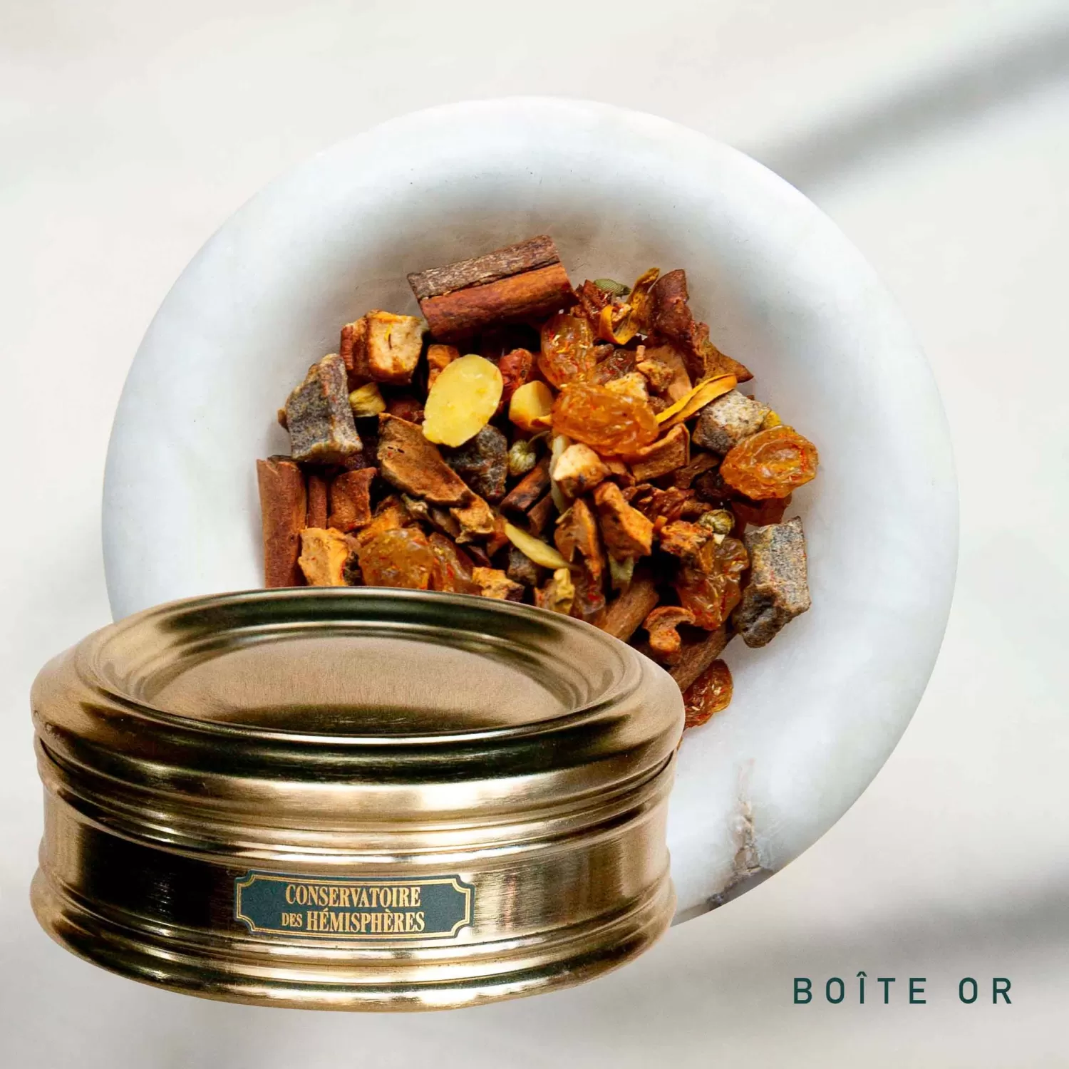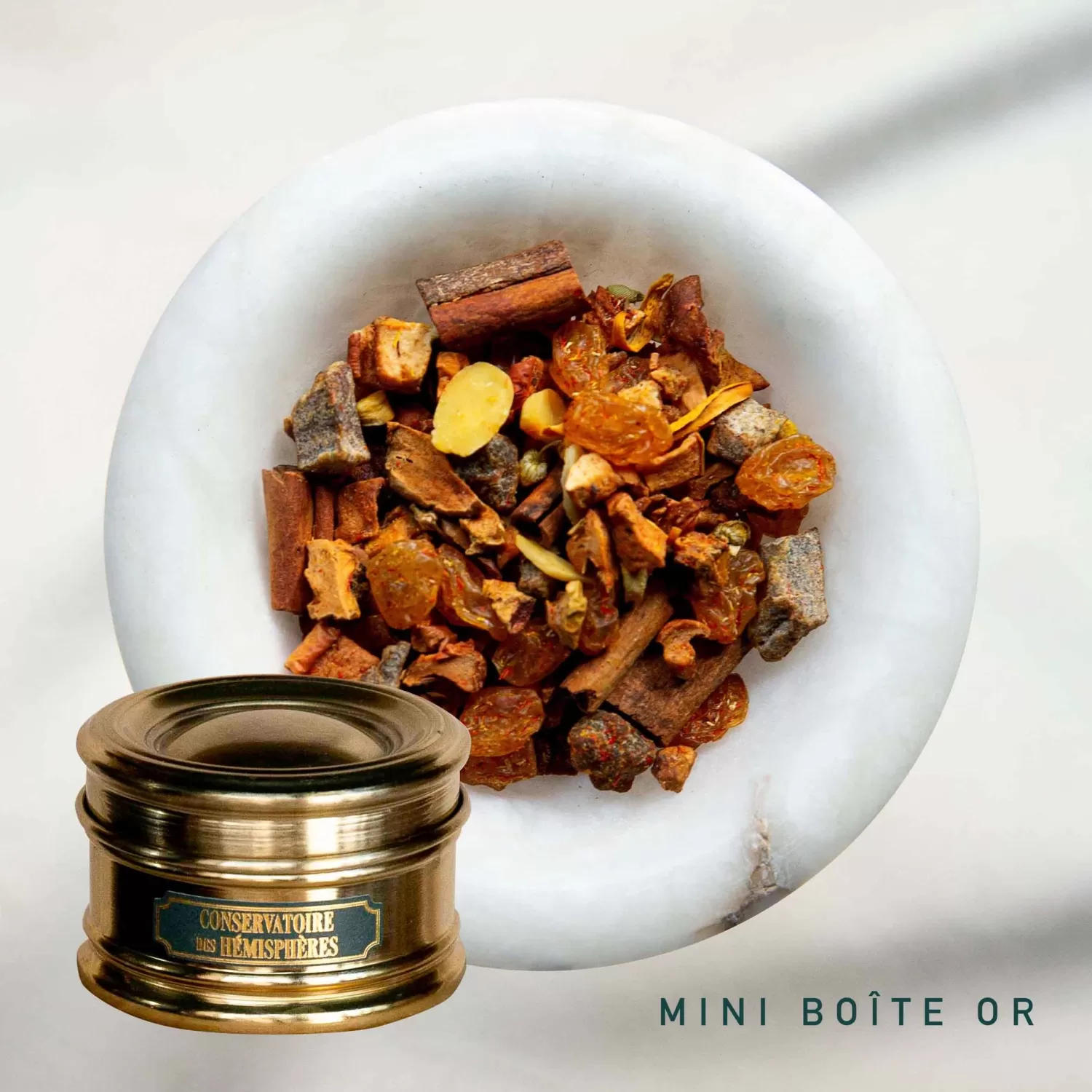 Tandis que résonnent les trois coups frappés, les amandiers cessent leurs bavardages, embrassent le trac et se déploient ainsi sur la scène en leur allure dorée. L’intrigue est captivante : Qui de la pomme ou de la poire qui gagnera le cœur éperdu à pourvoir ? Voilà que cette triade charmante peint avec saveur un hiver aux heures réconfortantes et à la nostalgie certaine. Impatientes en coulisses, cannelle, fleur d’oranger et camomille donnent la réplique et clôturent la farce, tout en cascade et cacophonie. Les bouquets par dizaines abreuvent le plancher.
